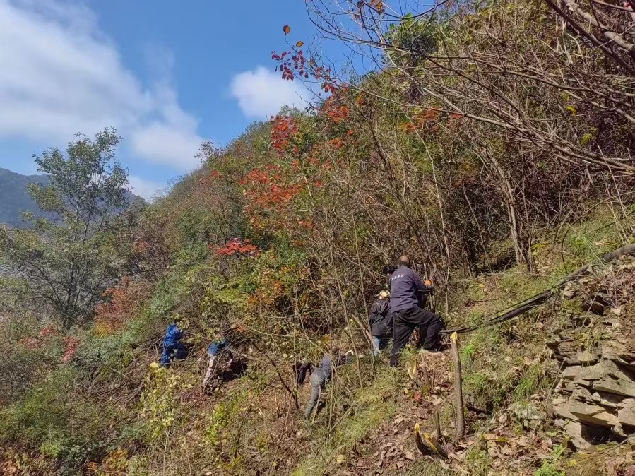 險情即命令,行動顯擔(dān)當(dāng)。面對復(fù)雜地形與植被纏繞的“攔路虎”,金米黨支部想方設(shè)法、果斷出擊,由黨員帶頭,組織全體在崗人員趕赴現(xiàn)場開展義務(wù)整治。他們自帶砍柴刀、繩索等工具,對嚴(yán)重影響施工安全的荊棘雜草進(jìn)行全面清理。